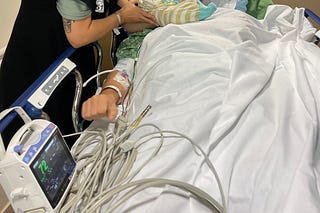 We were sitting in the waiting room for Matt’s OT and I was stretching him.